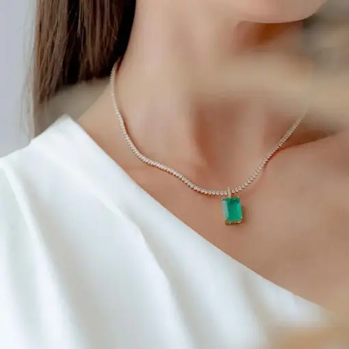 COLAR RIVIERA BANHADO A OURO COM PINGENTE EM CRISTAL RETANGULAR