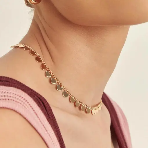 CHOKER COM PINGENTES DE CORAÇÕES LISOS BANHADA A OURO