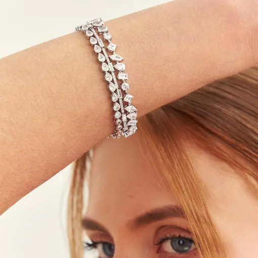 PULSEIRA RIVIERA COM CRISTAIS NAVETE, RETANGULO, GOTA , REDONDO